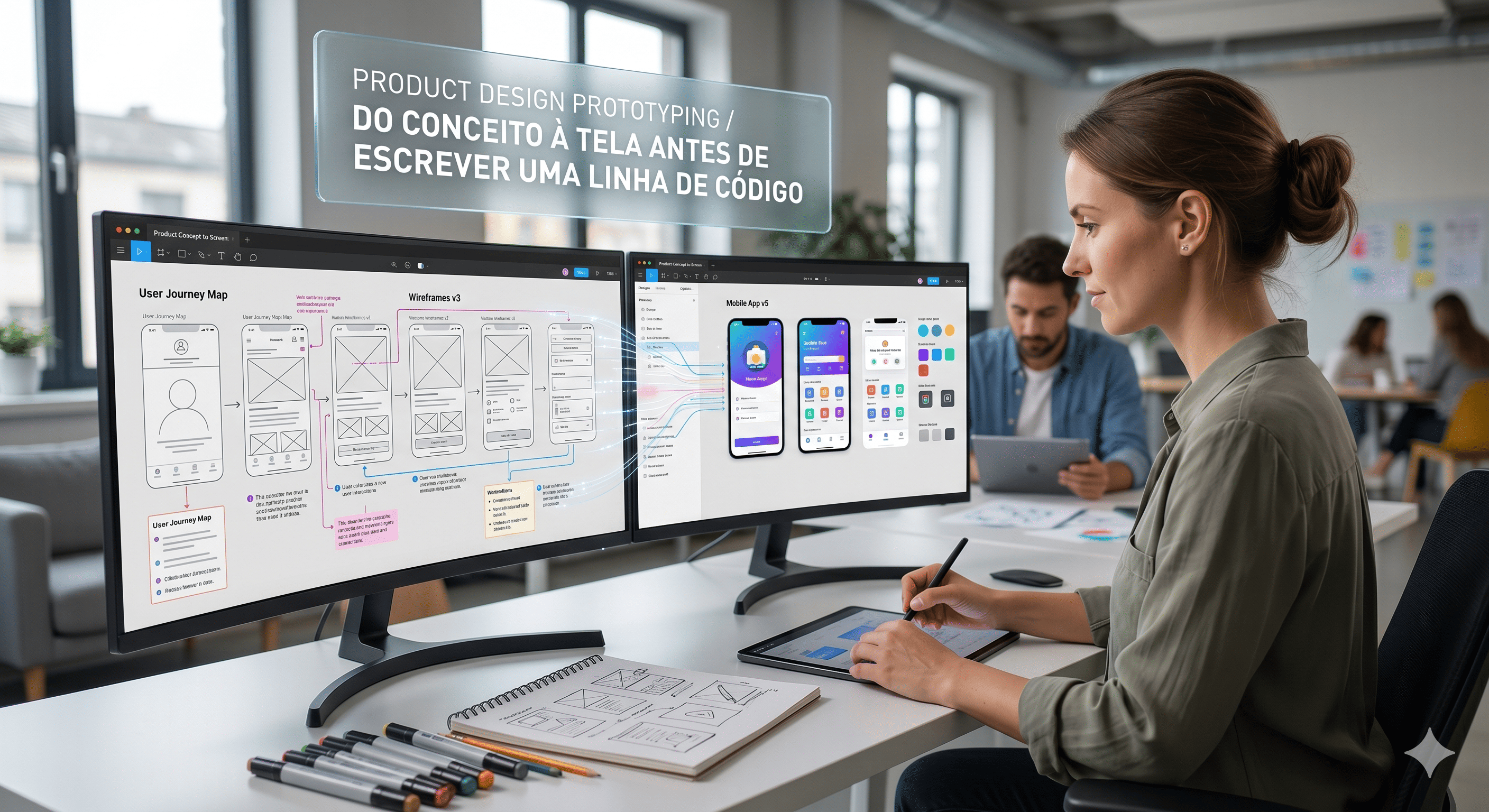 Criamos protótipos interativos, testamos com usuários e iteramos até a validação final.